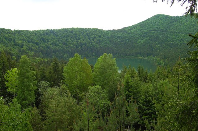 Szent Anna-tóhoz kanyarogtunk le a szerpentines autóúton. A látvány egyszerűen csodálatos volt. Egy kilátóból az egész tóra rálátni, de közelről is nagyon szép. A tóparti kis kápolnában éppen mise volt, így oda is be tudtunk kukkantani.