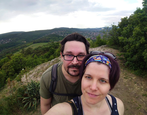 Szusszanás közben a továbbiakat tervezgettük. Végigmehettünk volna a sárga jelen, egészen a Virágos-nyeregig, ahonnan a Fenyőgyöngyéhez vagy az 1-es villamos végállomásához is el tudtunk volna jutni. A másik opciót választottuk: lemászunk a hegyről a jelöletlen úton, és hármashatárhegyi reptéren átvágva elsétálunk Hűvösvölgyig.