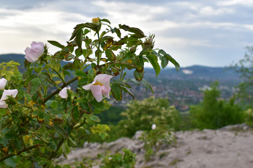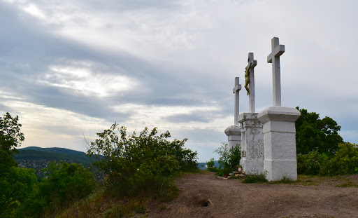 Nem is voltunk itt sokat, visszamentünk egy rétig, ahonnan a sárga sáv a Kálvária-hegy felé indult. Elkezdtünk mászni. Tengerszint felett 180 méterről kellett feljutnunk 384 méterre, úgyhogy a szuszogás megvolt. Ahogy rátértünk erre az útra, a tömeg megszűnt, alig pár emberrel találkoztunk csak.