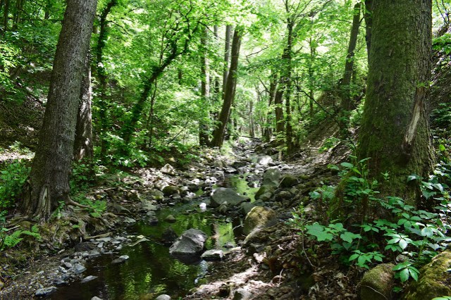 A Bükkös-patak mellett haladt a turistaút, mi is ezt követtük. Gyakran megálltunk fotózni, a patak nagyon hálás témája volt a képeknek. Csendesen csordogált a víz, a parton mesébe illő fák álltak telizöld koronákkal, madarak csicseregtek békésen – a megtestesült nyugalom.