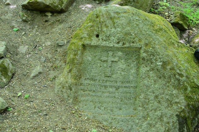 Az Ikon-kőnél megálltunk, megnéztük közelebbről. A kő eredete nem ismert, a szerb nyelvű felirat azoknak a szentendreiek szerbeknek a nevét sorolja fel, akik felújították az emlékhelyet – az nem derül ki, mit is újítottak fel pontosan. Egy évszám is szerepel, az 1862. A követ pár éve megtisztították és tájékoztató táblát is kapott.
