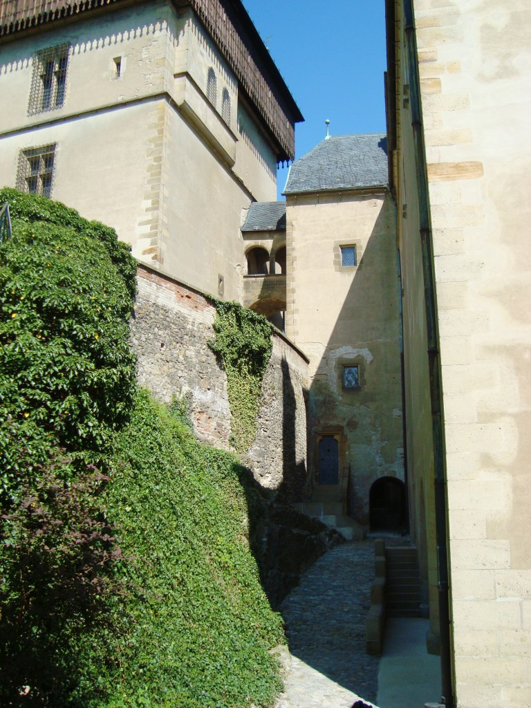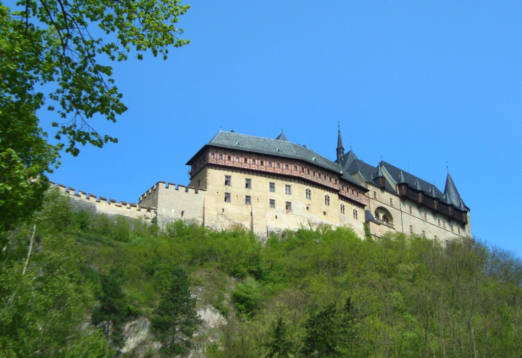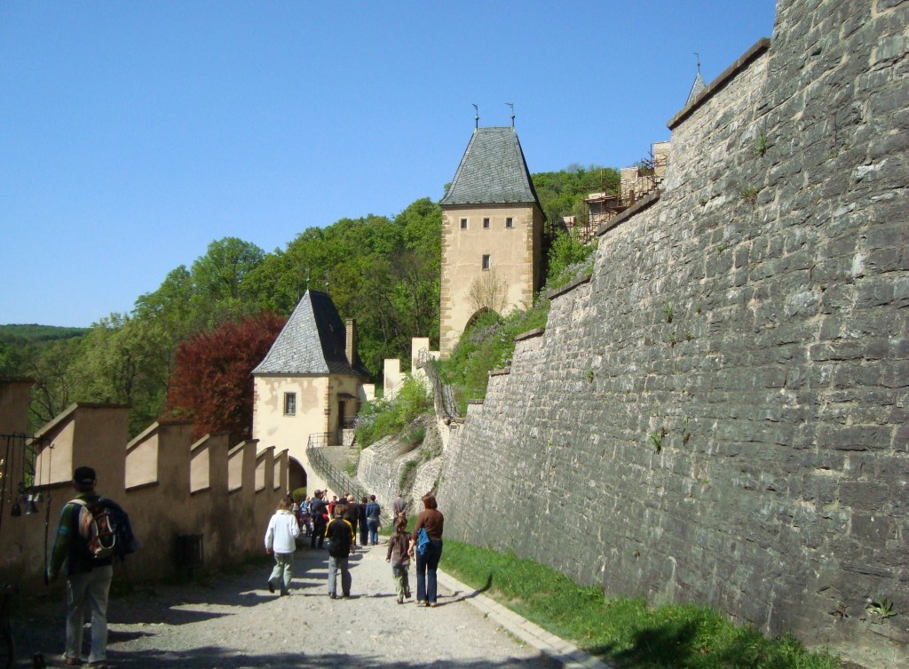 A várat csak idegenvezetővel lehet megnézni. Szerencsére angol nyelven is indulnak utak és még csak nem is kellett sokat várni. Elég népszerű helynek tűnik ez a külföldiek között. Nem is csoda, hiszen Csehország egyik leglátványosabb váráról van szó. Az építkezést IV. Károly rendelte el 1348-ban kezdődött, és rekordidő alatt, 17 év alatt el is készült. (Ő volt a legjelentősebb király Csehország történetében, ő alapította a Károly Egyetemet és a Károly híd építtetése is az ő nevéhez fűződik. Kisebbik fia Luxemburgi Zsigmond, magyar király volt.)
