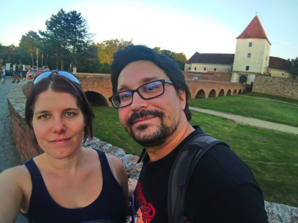Este elsétáltunk a várhoz, ahol a biztonság kedvéért bepecsételtünk a túrafüzetekbe. Besétáltunk a vár udvarába, pár percünk volt még, amíg ki nem zavart a portásbácsi, hogy zárna. Nemrég nézegettünk gyerekkori képeket, és az a tendencia, hogy valahányszor Sárváron járt a család, a várudvar kútjával mindig készült családi fotó. Folytattam a hagyományt.