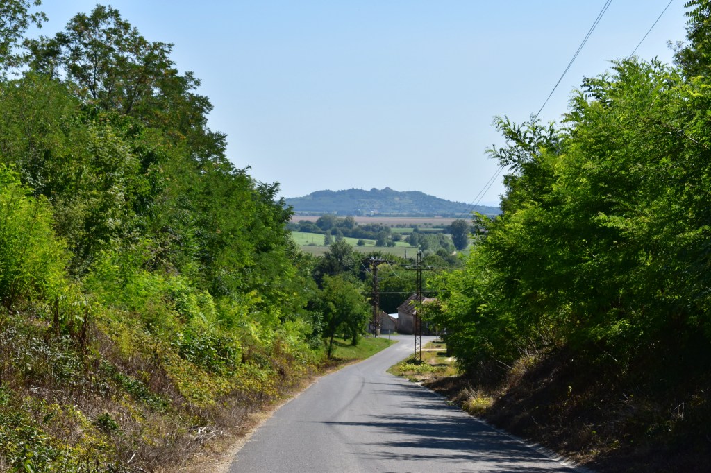 6.5 km várt már csak ránk Káldig. Az erdei út után köves, majd murvás út következett, nem állítom, hogy kényelmes volt rajta a járás. A kéktúra honlapján szereplő leírás szerint villanypásztoroknak kellett volna az utunkat állnia (“Egy útelágazáshoz érve a Csikászó-pataknál pillantjuk meg a Hidegkúti erdészház épületét, kerítésén a bélyegző dobozzal. Aszfaltburkolatú utunk jobbra tér, mi pedig balra, földutakon haladunk tovább. Több helyen villanypásztorral őrzött területeket keresztezünk. A drótok szigetelt fogantyúkkal kiakaszthatók az áthaladás időtartamára.”), de egyel sem találkoztunk, illetve csak mellettünk, kerítésen láttunk.