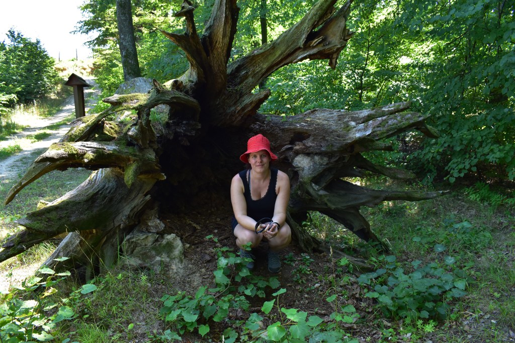 Elsétáltunk egy ősöreg fa kiszáradt törzse mellett, az avasi öreg tölgy 250 év után dőlt ki 1995-ben. Bámulatos a mérete, manapság nem látni ekkora tölgyeket.
