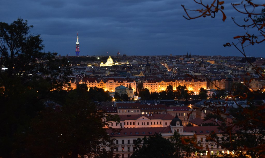 A 8-as épület pizzériájában vacsoráztunk, aztán lesétáltunk a Petřín parkon keresztül a városba. Az ezerfelé futó kis sétányoktól szabdalt park a gondosan ápolt virágokkal és égigérő fákkal még mindig az egyik kedvenc dolgom Prágában.