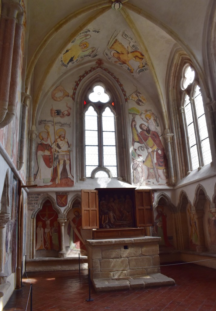 A vár belső falai eredetileg festettek voltak. El tudom képzelni, milyen pompázatos lehetett fénykorában. Néhány terem ma is teljesen színes, és több helyen felfedezhető az eredeti, mára elhalványult falfestés.