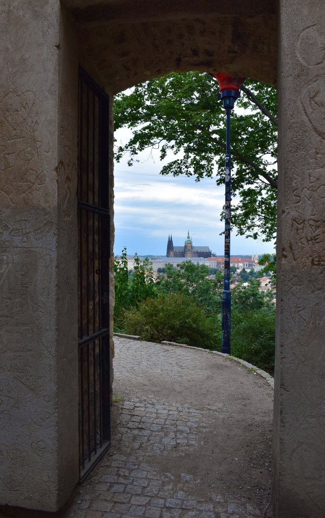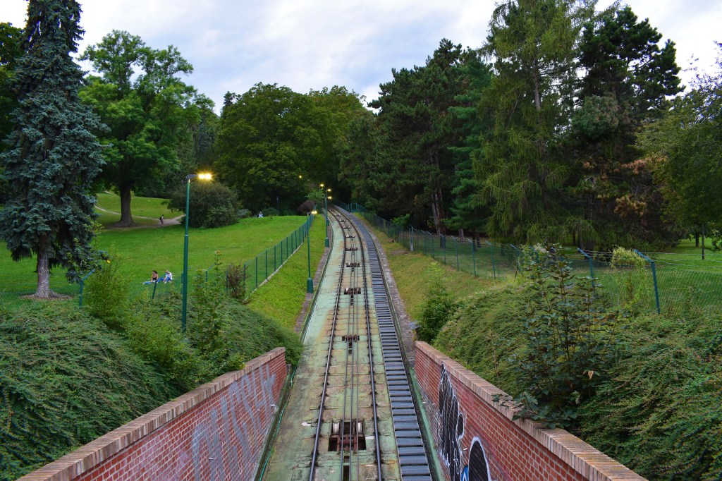 A Nebozizek lanovka megállóig kanyargós utakon sétáltunk, utána kicsit a siklópálya mellett haladtunk. Nem emlékszem, hogy korábban jártam volna már erre, szerintem ez az útvonal valahogy kimaradt. A Strahovról általában a park másik bejáratához szoktam lesétálni, ami a Švandovo divadlora visz.