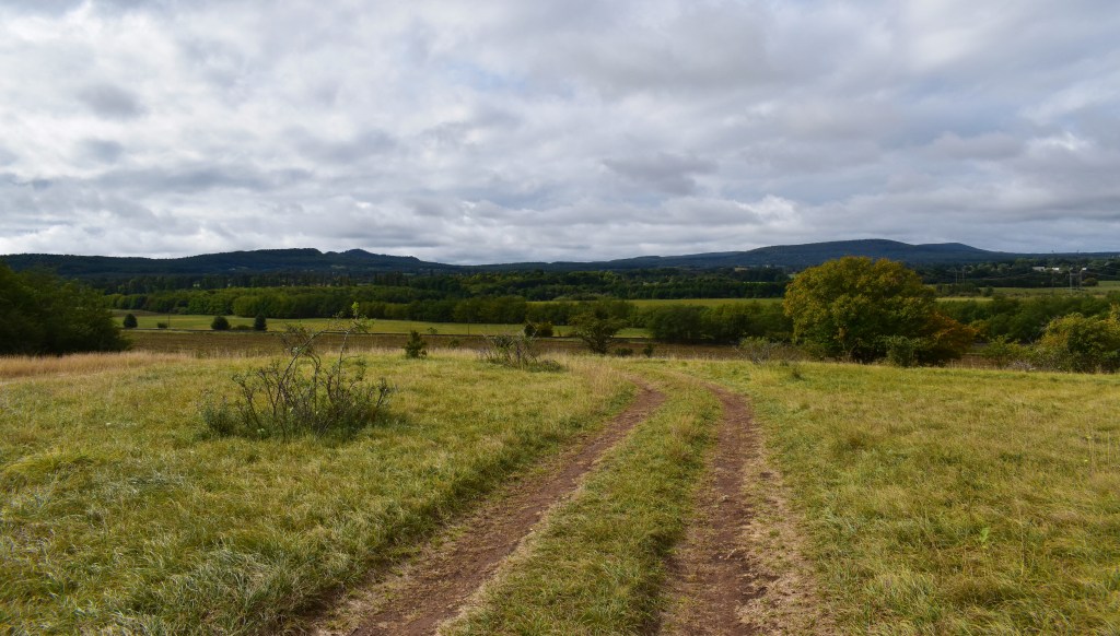 A városból kiérve még sokáig láttuk a sümegi várat. Elhaladtunk a kempinghez vezető út mellett is, és megpróbáltuk megtalálni az őskori kovabányát, amiről a Kovakő Camp a nevét kapta, de nem leltük meg. Azért is volt nehéz, mert a kiállítóhely felújításra vár, benőtte a gaz. Tudtuk, hogy hosszú, 28 km-es út áll még előttünk, úgyhogy nem keresgéltünk sokáig, de sajnálom, hogy ez kimaradt. Szállásadónk szerint jövőre felújítják, talán majd akkor megnézzük mi is.