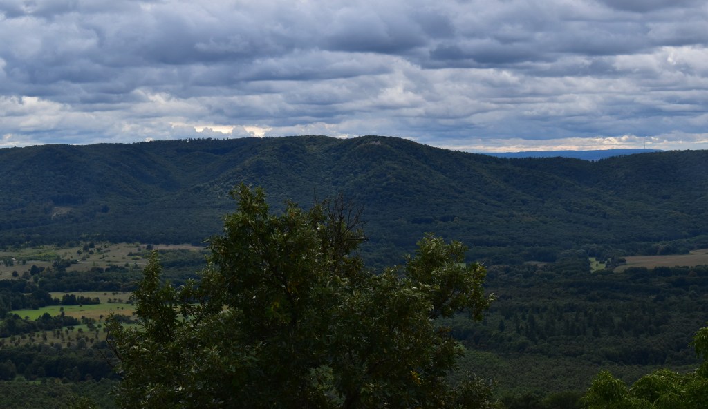 Kis kitérő felmenni a Tátika várromhoz, de érdemes megnézni, a panoráma csodálatos. Nemcsak a szemközti Rezi várát látni, hanem a zalaszántói sztúpa csúcsa is kikandikál a szomszédos domb tetején, és kis lábujjhegyen állás után a sümegi vár is előbukkan a fák lombjai között. Ha ez nem lenne elég, a Badacsony is felbukkan, ahogy a Balaton kékje is a hegyek között. Sőt, a Ság-hegy jellegzetes körvonala is látható a messzeségben, amit a második szakaszon annyit kerülgettünk.