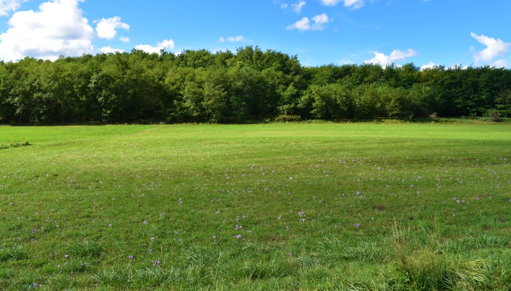 Innen egy bő kilométeren az országút mentén haladtunk, után tértünk rá az erdőszéli földútra. A mezőn őszi kikericsek virágoztak.