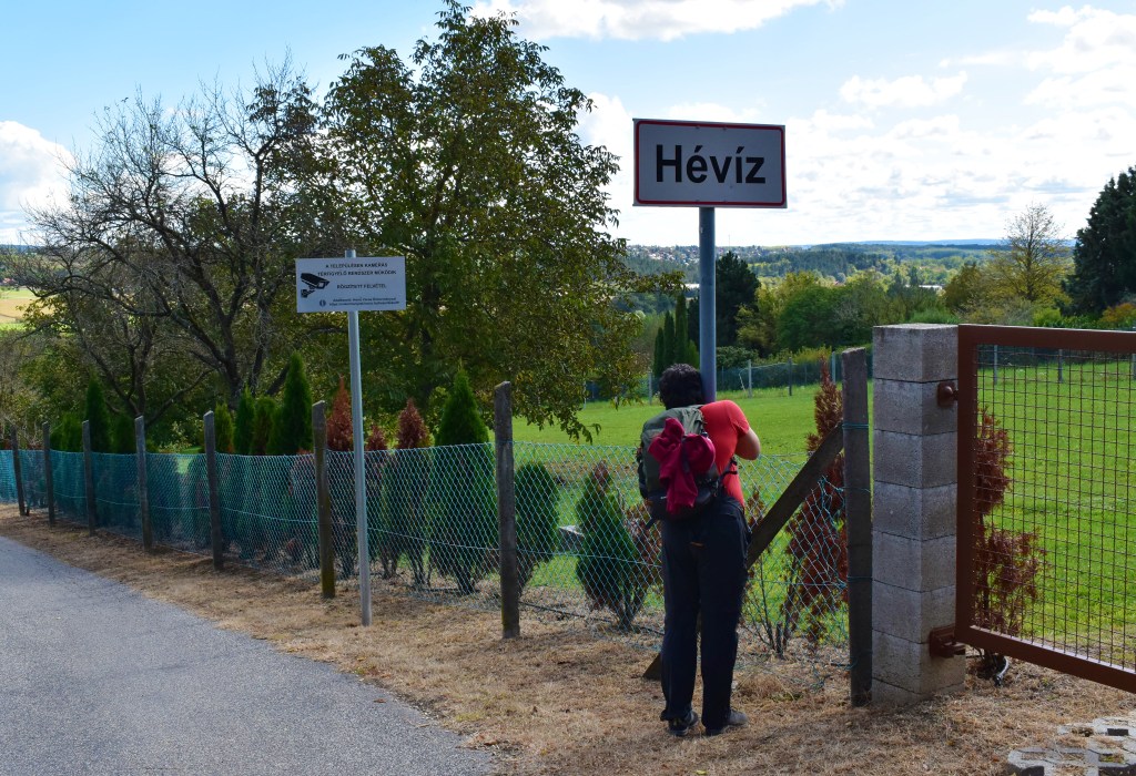 Lefelé kezdett lejteni az út, és ahogy kiértünk az erdőből, Hévíz település tábláját pillantottuk meg. Fox örömében meg is ölelgette.