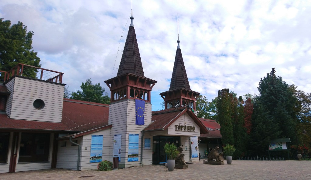 A pályaudvaron pecsételtünk, és találkoztunk húggal. Elvonszoltuk magunkat a tófürdő bejáratáig, és egy órát úszkáltunk a vízben. Annyiból csalódás volt, hogy én azt hittem, sokkal melegebb a víz, langyosnak érződött csak – bár most olvasom, hogy ősszel hidegebb a hőmérséklete (24-26 fok), mint nyáron (33-35 fok). A tóba érdemes úszógumit vinni, mert nagyon mély, a legmélyebb pontján 38 méter, és korlátokon lehet csak kapaszkodni, leülni nem lehet. Viszont gyönyörű volt a sok tavirózsa, még sosem láttam őket ilyen közelről, és a tó is szép, a jellegzetes fa építményeknek pedig béke korabeli hangulata van. (A tóról nem készítettem képet, na majd legközelebb.)