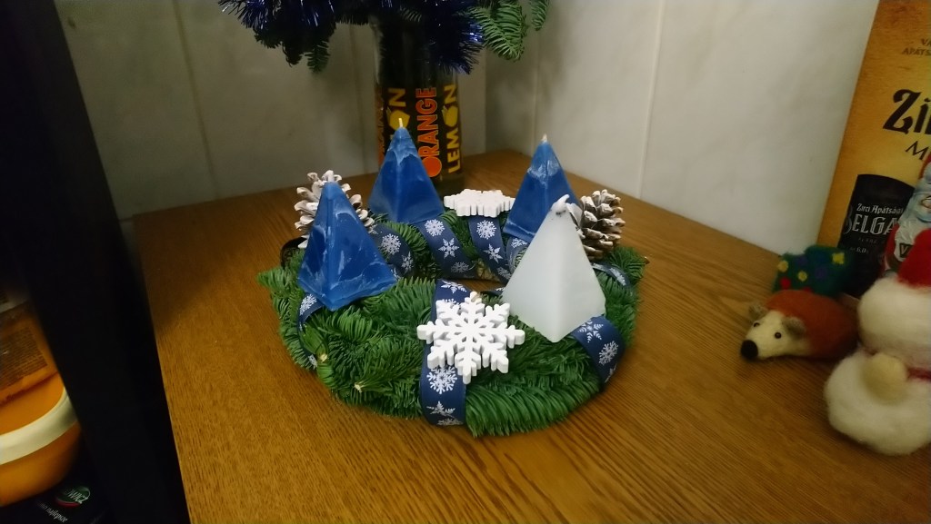 A hétvége két napját teljesen feltöltöttük programokkal, nekem is elég sűrű volt foglalkozások szempontjából. Szombat délelőtt két órán át jógáztam Ringgel, utána szervezői ebéd, majd a KOMT-tól független program következett: Nóri karácsonyi workshopja. Megcsináltuk az adventi koszorút, én még makraméztam is, közben trécseltünk. Olyan jó volt a hangulat, hogy nem akaródzott 4-kor elbúcsúznom, így a szemtornát kihagytam, és csak 5-kor hagytam ott a lányokat, hogy Stara tűnemezelő műhelyén vegyek részt. Nem lesz a kedvencem a tűnemezelés, elég macerás és tényleg sok türelmet igényel, de jó móka volt kis figurákat gyártani.