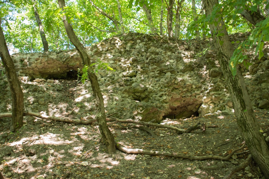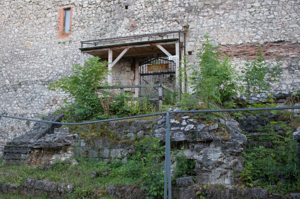 Erdős szakaszon haladtunk még egy darabig, aztán kiértünk egy betonútra, ahol hirtelen megnőtt a népsűrűség. Innen párszáz méter volt a csáki vár. Felmásztunk a romokhoz, de sajnos nem sok nyoma van az egykori várnak, csak egy nagyobb faldarab. Nem meglepő módon a Csák nemzetséghez tartozott a terület, és a várat 1289-ben oklevélben említették Oroszlánkő néven, de a Gesta Hungarorum és a Képes krónika is említést tesz róla. A fellelhető emlékek szerint a törökök pusztították el a 16. században a hozzá tartozó faluval együtt. Ezután az Eszterházyakhoz került, akik építőanyagként használták fel a köveit.