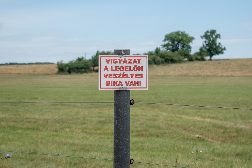 Busszal érkeztünk meg Gántra szombat délelőtt, mert autóval egy rémálom lett volna a logisztika, a kezdőpont és a cél között nagyon rossz a tömegközlekedés. Húgra is várnunk kellett egy órát a gánti fagyizóban, mert Várpalotáról sem egyszerű Gántra jutni. Mikor együtt volt a csapat, egy süppedős, homokos földúton távolodtunk el a településtől. Mellettünk tehenek legelésztek, de szerencsére nem találkoztunk a veszélyes bikával, akire tábla is figyelmeztetett.