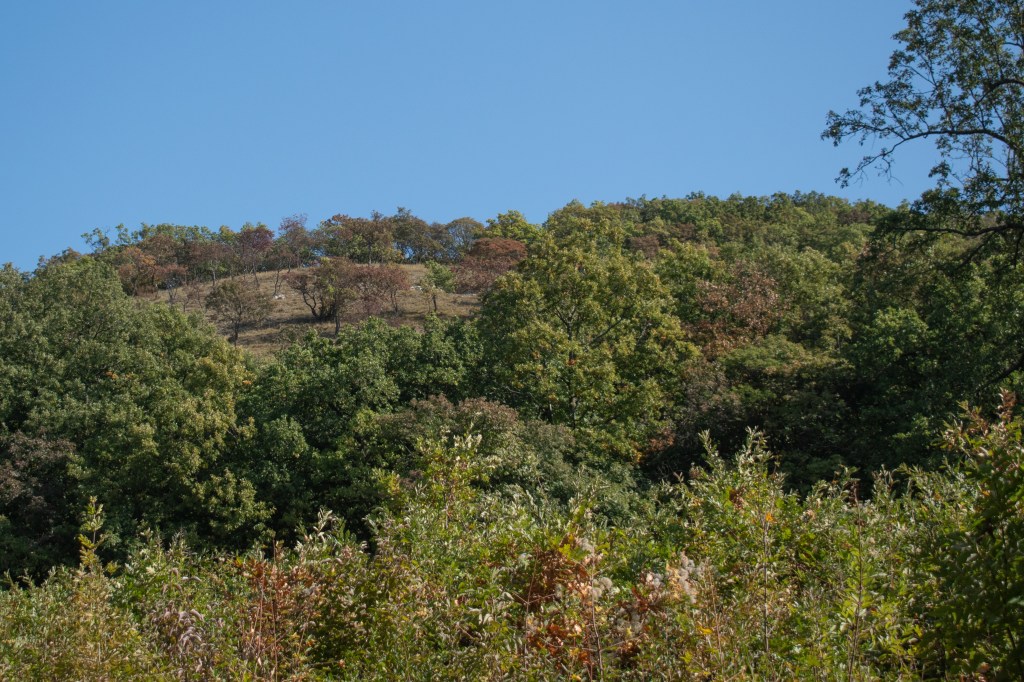 Kisebb emelkedő után nyílt terepre értünk, szántók és mezők mellett sétáltunk. Az út menti bokrok között igazi csemege lapult: a kökény bár még elég savanyú volt, de nagyon jólesett. Amíg tudtunk, rájártunk a bokrokra. 🙂