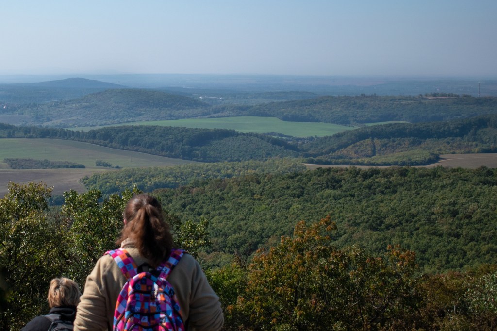Csak ezután folytattuk az utat. Letértünk kicsit a kékről, és megnéztük a panorámát a Somlyó tetejéről. A távolban még az esztergomi bazilika is látszott, bár elég párás volt az idő.