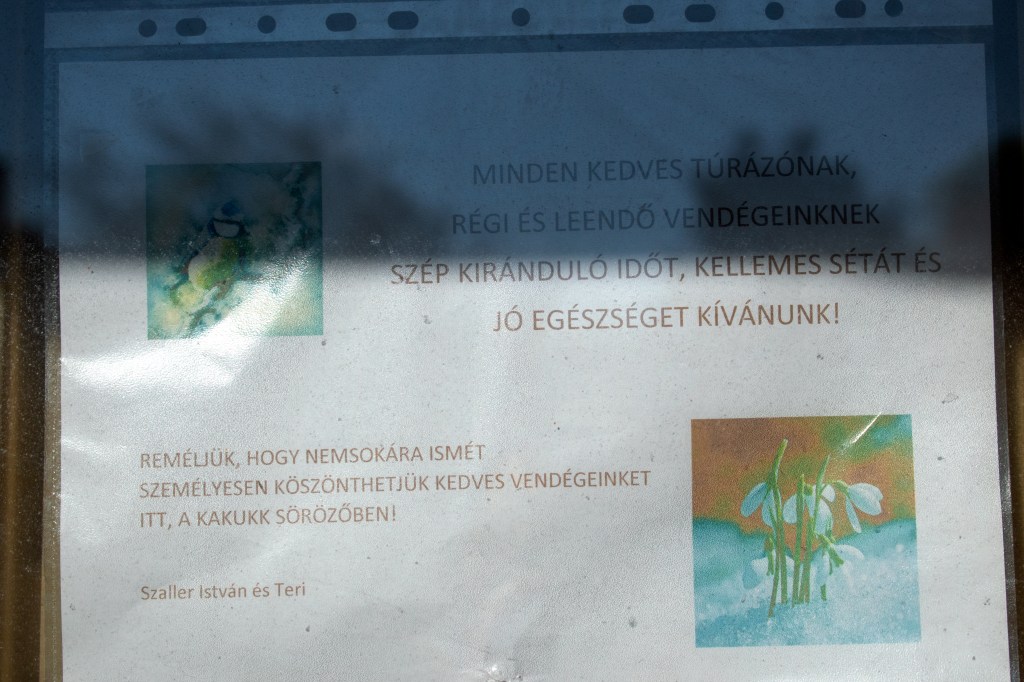 A pecsét a Kakukk söröző bejáratánál volt. A hely láthatóan régóta zárva van, ami nagy kár, pedig a tulajdonosok nagyon kedves üzenetekkel biztatják az erre járó kéktúrázókat. Ha nyitva lettek volna, már csak emiatt is megittunk volna itt valamit, de amúgy is jólesett volna egy kis frissítő. Sebaj, jobb híján mentünk tovább.
