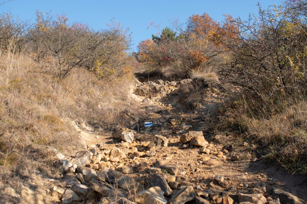 A barlang után nem sokkal lefelé vitt az út, itt kimelegedtünk annyira, hogy végleg elpakoltuk a sapkát és sálat a táskákba.