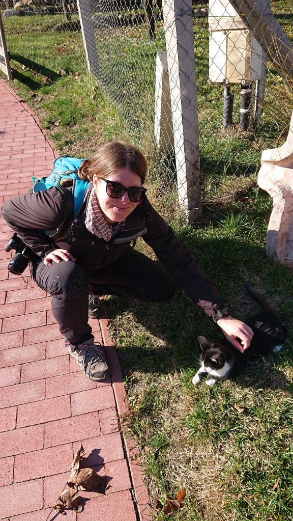 Leültünk a mesterséges tó mellé, fröccsöztünk, cicát simogattunk. A rosé finom volt, a hátizsákom könnyű, úgyhogy vettünk egy üveggel. Igazi madárlátta rosé, de megérte cipelni, mert nagyon finom.