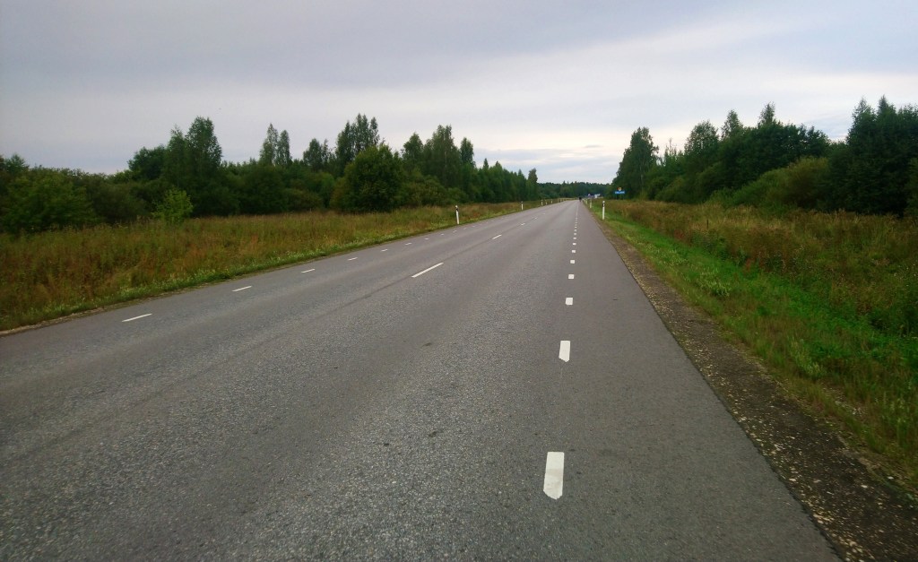 A betonút hamar murvás földúttá változott, nem könnyítve meg a dolgunkat. Ezt az egyet nem szeretem Észtországban: autóútként feltüntetett utak váratlanul földúttá válnak, amik ráadásul tele vannak szórva murvával. Kocsival még csak-csak lehet itt haladni, de bringával kevésbé. Jó pár kilométert tekertünk, mire újra szilárd talaj került a kerekeink alá.