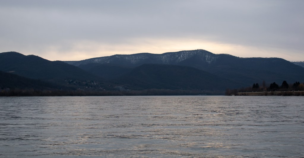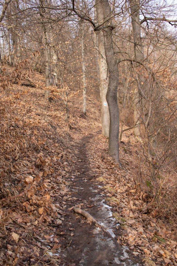 Ahogy a hegy árnyékos oldalára értünk, a sarat hó váltotta fel, és újra téli csodavilágba csöppentünk. Lenézve a fák között valamennyire látszott a Duna és Vácból egy pici. A levegő csípős volt, igazi téli hangulat volt.