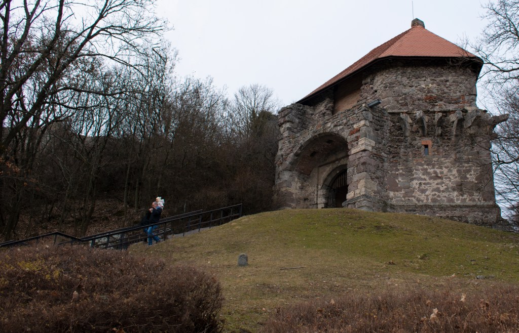 Visszabattyogtunk a kékre, és újabb dagonyán másztunk fel a várhoz. Ott láttuk csak, hogy egyébként az egész sáros, csúszós kalandot kihagyhattuk volna, mert az étteremtől a várig egy autóút is vitt. Nem baj, szeretjük a kihívásokat.