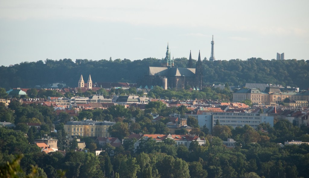 Amikor a kinti részeken sétáltunk, a nap is kisütött végre. Nemcsak a növények voltak izgalmasak, hanem a kilátás a városra is szép volt. Egy olyan oldalát láthattuk innen a prágai nevezetességeknek, ahogy eddig nem láthattuk őket. A fenti képen a vár és a Petřín hegy is látszik.