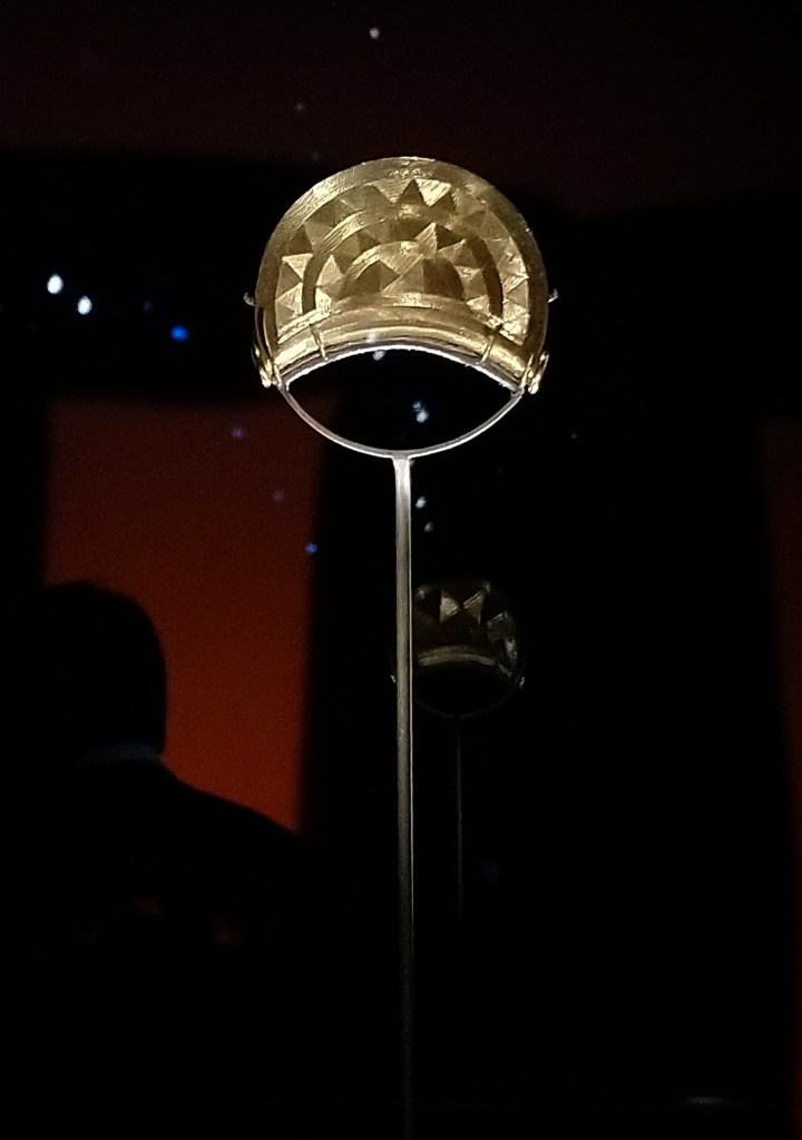 A legjobban védett tárgy a nebrai korong volt, amit fotózni se lehetett – csak azért ott állt egy alkalmazott, hogy ha valaki elkezdte felemelni a telefonját vagy fényképezőjét, rászóljon. Ez a korong azért jelentős, mert az égbolt első ismert ábrázolása látható rajta. 2013 óta az UNESCO A világ emlékezete programjának része, ez is mutatja, mennyire jelentős lelet. Ami tök érdekes, hogy egy illegális fémkeresős ásatáson találták Németországban 1999-ben, és csak 3 évvel később sikerült megszerezni a feketepiacról egy vásárlásnak álcázott rendőrségi akció során Svájcban.