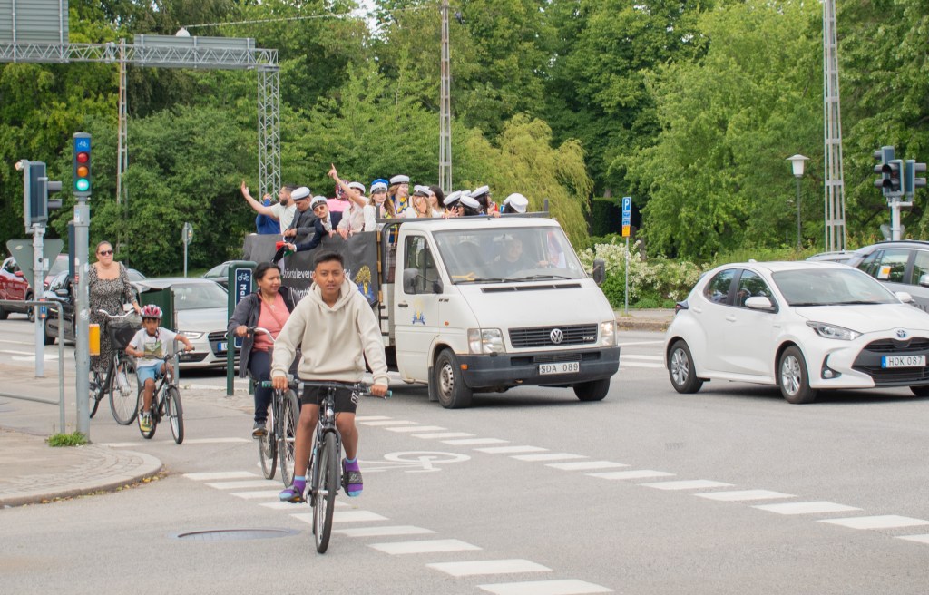 A Flygbussarna vitt minket Malmö belvárosába. A Triangelnnél szálltunk le, ahol eszméletlen dudálás hangzavarán át közelítettük meg a hostelt. Nem értettük, mi történik, egészen az első, végzős diákokat szállító kamionig: belecsöppentünk a végzősök ünnepségébe. Fura volt látni, hogy az integető, sikoltozó diákokra szinte senki nem reagált: ilyen lenne az érzelemmentes skandináv módi? A svéd diákok kis kamionokon vonultak, míg a bevándorlók gyerekei autók ablakaiból lógtak ki. Nem teljesen értem, hogy direkt ünnepeltek másként vagy hogyan alakult ez ki. Egyébként Malmö lakosságának harmada külföldön született. A legtöbb bevándorló Irakból és Szíriából érkezett, és ez meglátszik a városon: rengeteg bevándorló dolgozik boltokban, éttermekben, sok a kebabos, fodrászat és kávézó, amit bevándorlók üzemeltetnek. Az utcákon is látványosan sok a muszlim fejkendős nő. Amikor legutóbb Malmöben jártam, ez nem tűnt fel, de lehet, hogy mindkétszer hideg időszakban voltam itt, és kevesebb emberrel találkoztam.