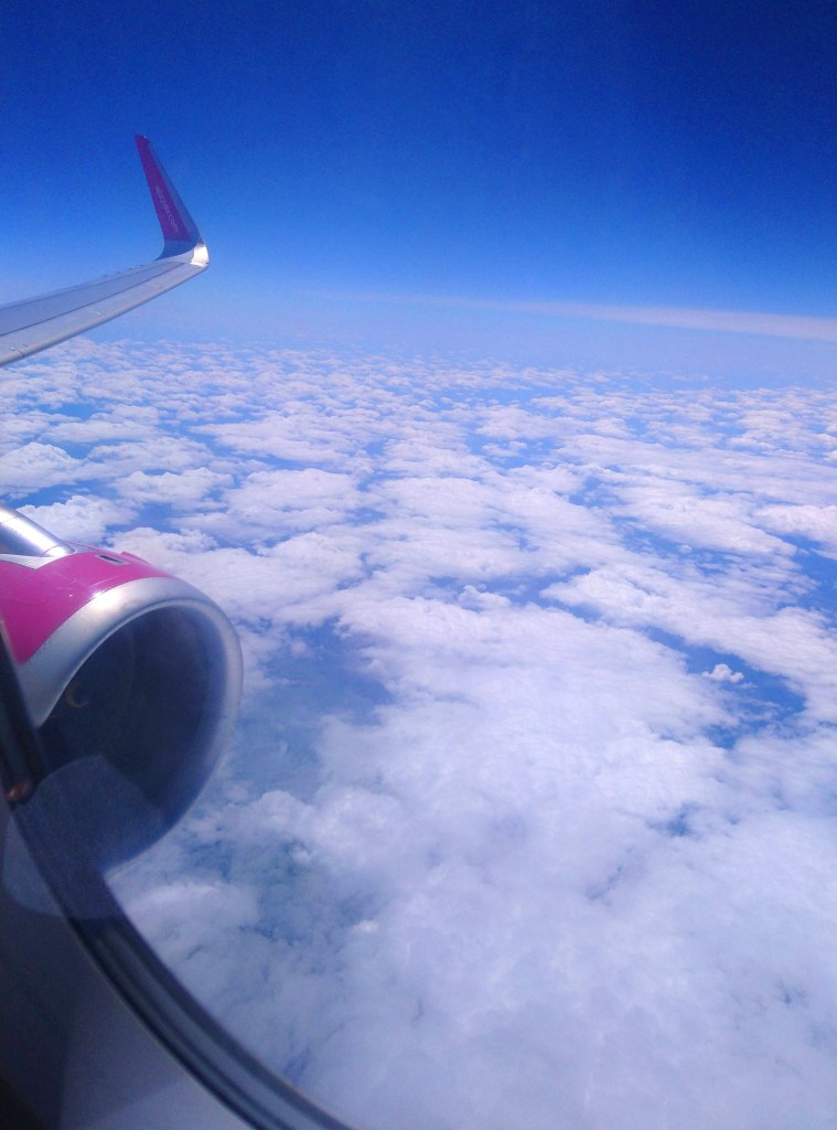 Kényelmesen indult az utazás, mert csak 11.40-kor szállt fel a gépünk Ferihegyről. Mivel jóanyám először repült, még arra is hajlandóak voltunk, hogy helyjegyet vegyünk (sose szoktunk), hogy ő ablak mellett legyen, és egymás mellett üljünk. Alig szálltunk fel, amikor a stewardessek kétségbeesetten kerestek orvost vagy nővért a gépen – valaki rosszul lett, de szerencsére csak bepánikolt a felszállástól, annak az utasnak is ez volt az első repülése. Szépen indult volna az utunk, ha azzal kezdjük, hogy visszafordulunk. Nagyon örültem, hogy a repülés további része eseménytelenül telt.