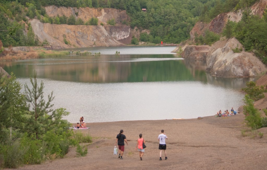 Pedig hatalmas kihagyott ziccer ez a tó, elképesztő szép a táj, a víz kellemes hűvös… bár belegondolva pont egy kiépített strand tenné tönkre az (kicsit ironikus egy bányató esetében, de) értintetlen tájat. Így is elé zavaró volt, amikor megjelent egy csapat quados, visszhangzottak a motorok a sziklafalakon, aztán megjelentek terepmotorosok is.