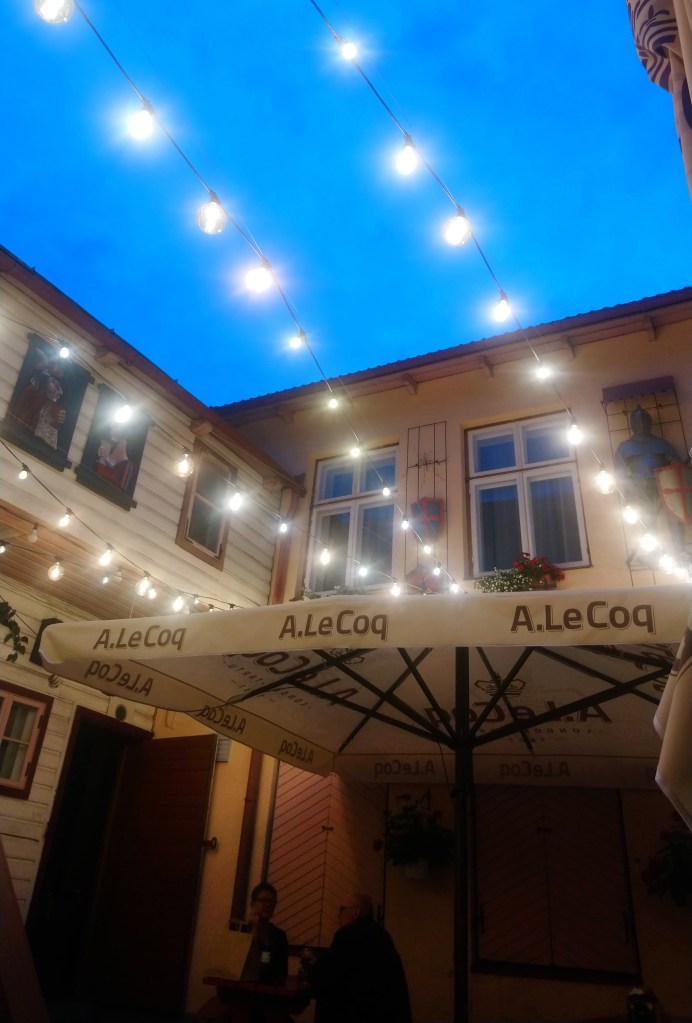 Mivel éhesek voltunk, visszamentünk a belvárosba. A sétálóutcán találtunk egy aranyos helyet, a Rüütlihoov pubot, ahol egy hangulatos belső udvaron ültünk le. Nagy meglepetésemre volt rántott sajt, amit Alexander sörrel öblítettem le. Olyan jó volt kicsit leülni, elmerülni a valóságban, hogy Észtországban vagyok, Bogival vagyok, és minden szép és jó. Kicsit szürreális volt még, hogy este negyed 11-kor nem volt teljesen sötét, de azért már jóval hamarabb sötétedett, mint jaanipäev környékén. Vacsora után fáradtan estünk be az ágyba, én aludtam is, mint a bunda.