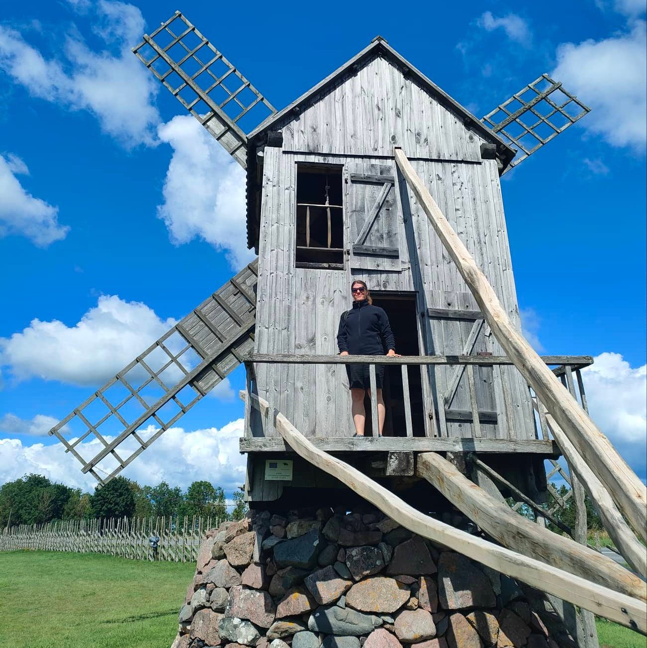Pont akkor érkezett egy nagy turistabusz a templomhoz, amikor mi is ott jártunk, úgyhogy az egyébként az út mentén, a semmi közepén fekvő templomban kerülgetni kellett az embereket. Tovább is álltunk, és folytattuk az utat a Angla Tuulikud, azaz az anglai szélmalmok felé. A parkba belépőt kell fizetni.