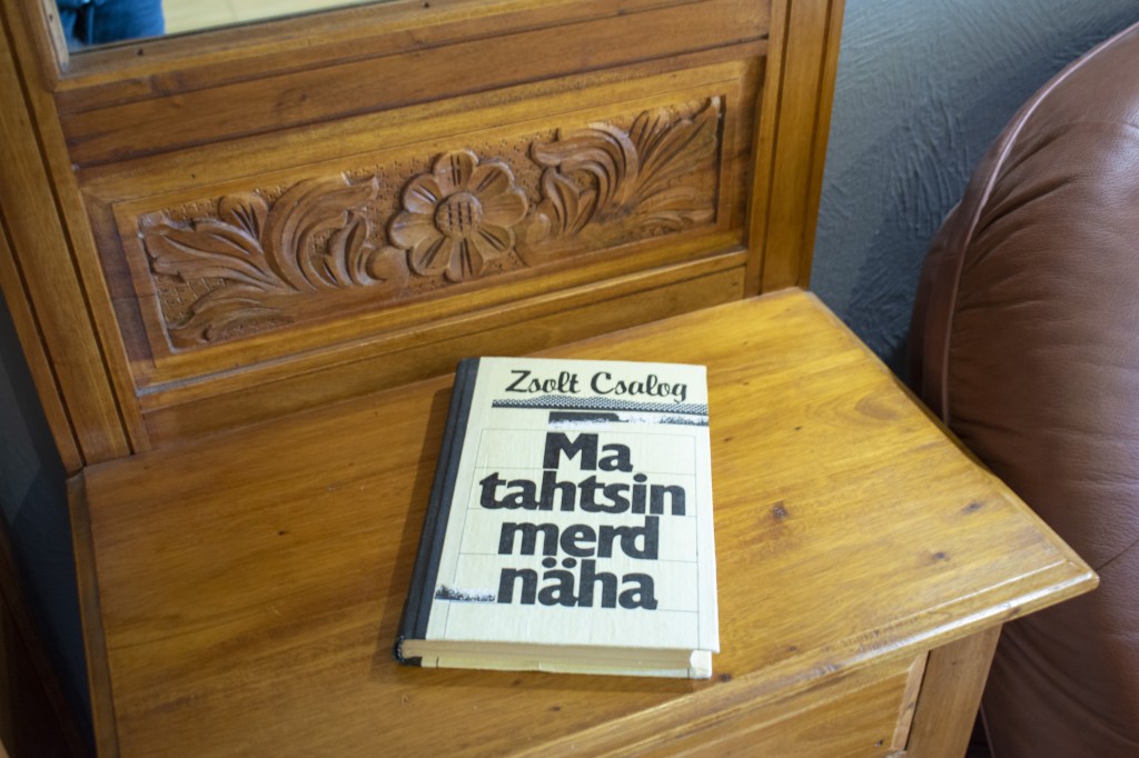 Mielőtt bármit is csináltunk volna, beültünk a kávézóba harapni valamit. A főépületben található a kávézó és a mosdók, az emeleten pedig egy kis kiállítást lehet megnézni. Az egyik szobában teljesen váratlanul bukkantam rá Csalog Zsolt A tengert akartam látni (Ma tahtsin merd näha) című könyvére észt nyelven.
