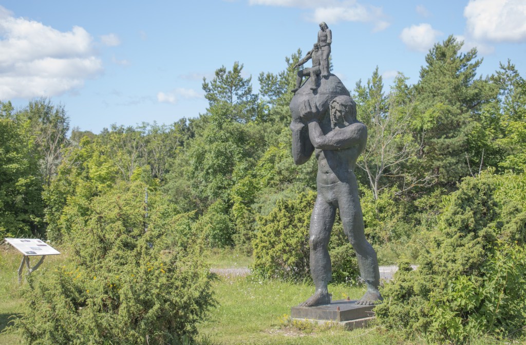 Egy kilátópontnál ráláttunk a tengerre, ott napoztunk egy kicsit. Itt volt egy szobor Leiger, a hős óriás tiszteletére. Leiger a saaremaa-i óriás, Suur Töll öccse volt, és Hiiumaa közepén egy Leigri nevű faluban élt, a sírja pedig Kõpuban van. Leiger jóban volt saaremaa-i rokonaival, és Suur Töll gyakran meglátogatta őt, hogy együtt szaunázzanak és káposztát vigyen haza a levesébe (ez a káposztás dolog zavarbaejtően konkrét :D). Leiger még egy átjárót is elkezdett építeni Kassari és Saaremaa közé, de aztán a fivérek összevesztek, és az út befejezetlen maradt – ez a mai Sääretirp, ami egy szárazföldi nyúlvány, és tényleg olyan, mintha Saaremaa felé tartana.