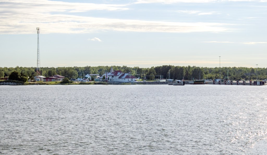 A kastélytól már csak pár kilométerre volt a kikötő, ahol az utolsó vízreszállásunk megesett. Heltermaa kikötőjében egy fagyit még megettünk, amíg a hajóra vártunk. A hajón volt kis menza, ittam is egy sört, mert több mint egy óra volt az út. Mikor kikötöttünk, pont kezdődött az aranyóra. Lett volna elvileg egy bicikliút Haapsalu felé, de az nehezen járható volt, úgyhogy a főúton maradtunk, az sem volt túl forgalmas, de legalább jó állapotú.
