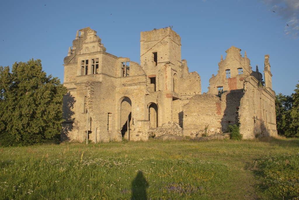 Már előre kinéztem, hogy van az út mentén egy befejezetlen, romos mõis, az Ungru mõis. Ezt ugyanaz a von Ungern-Sterberg család birtokolta, akik a Suuremõisa birtokot Hiiumaa-n. 1893-ban kezdték építeni neobarokk stílusban, de ahogy elkészültek a falak és felkerült a tető az épületre, abba is maradt az építkezés – az épület belsejére már nem maradt pénz. Az épület sokáig üresen állt, és lassan pusztulásnak indult. A II. világháború alatt elveszítette a torony tetejét, majd a szovjet hadsereg tulajdonába került, akkor vált igazán romossá.