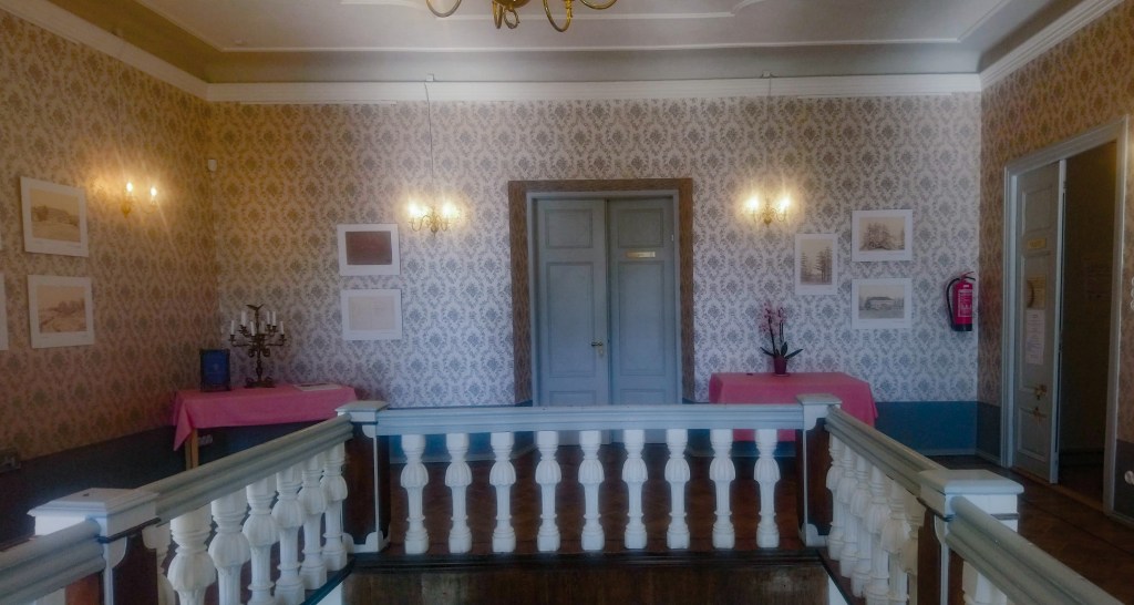 A kikötő előtt volt még egy mõis, amit meg szerettünk volna nézni, de a honlap szerint hamarosan zártak. Odagurultunk azért a Suuremõisa kúriához, és mivel éppen egy komolyzenei koncert folyt a díszteremben, még be lehetett menni, sőt, nagyon kedvesen invitáltak, hogy nyugodtan nézzünk körül.