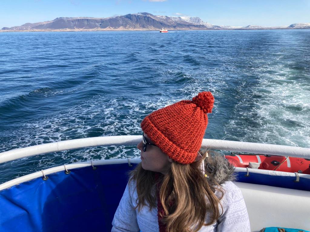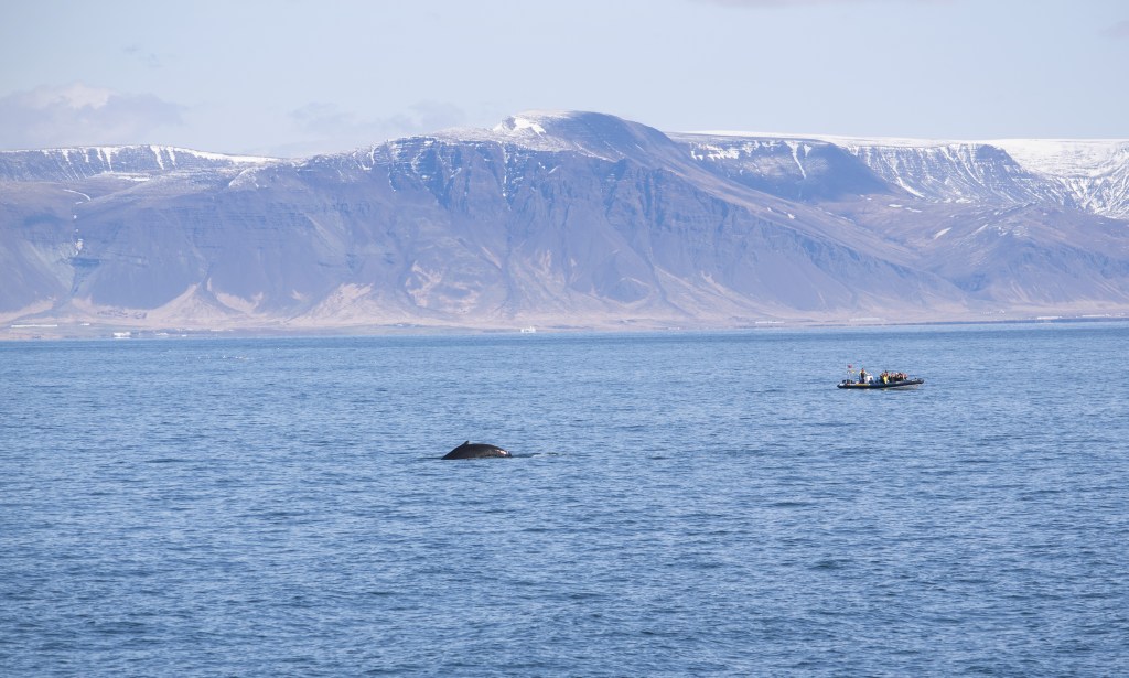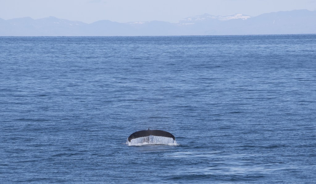 Ahogy eltávolodtunk Reykjavíktól, több olyan pontot láttunk, ahol nagyobb volt a halsűrűség, és a madarak ott köröztek felettük és csipegettek belőlük. Innentől nőtt meg igazán az esély arra, hogy bálnákkal találkozzunk, mert ők is erre szoktak falatozni.