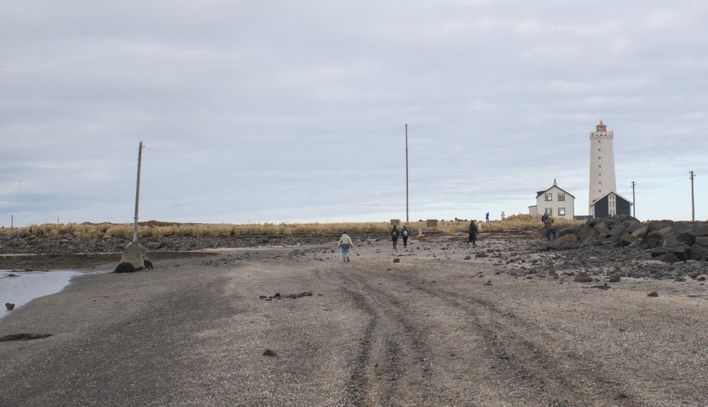 Mivel a Hallgrímskirkja, a nagy evangélikus templom még nem volt nyitva, a Grótta szigetre mentünk. Azért érdekes ez a hely, mert dagálykor tényleg sziget, apálykor viszont egy földsávon át lehet sétálni a világítótoronyhoz. Jókor jártunk ott, az alacsony vízszint miatt éppen félszigetként működött a Grótta. Ez egyébként természetvédelmi terület is, amit május 1-től lezárnak a látogatók előtt, mert sok madár fészkel erre.