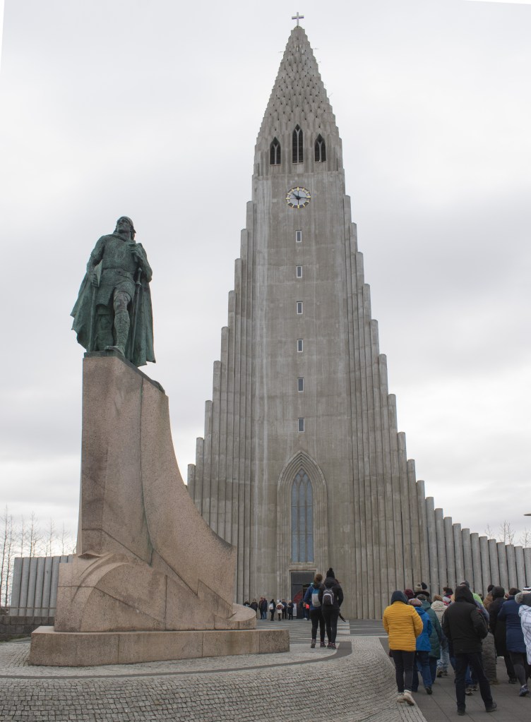 A templom előtti téren Leif Eriksson, Vörös Erik fiának lovasszobra látható – a szobrot 1930-ban ajándékozta Izlandnak az Egyesült Államok.