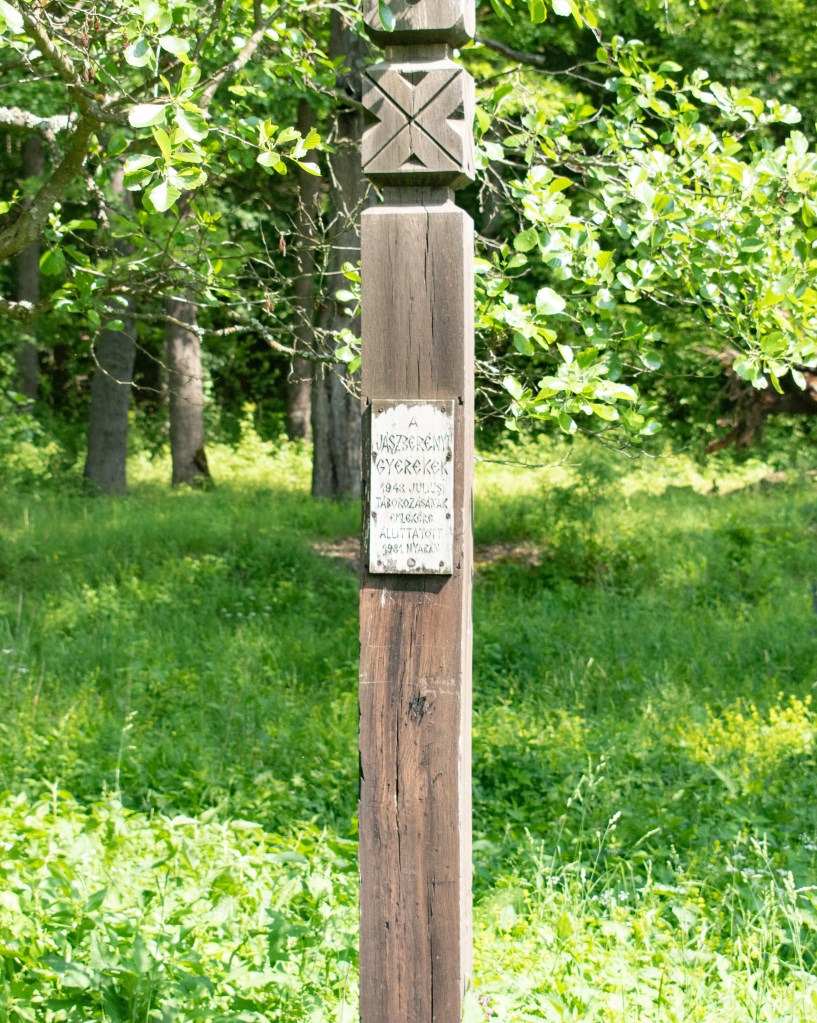 Az esős tavasz megtette a hatását, az aljnövényzet burjánzott. Egy ideig még olyan úton mentünk, amin látszott, hogy egykor betonút volt, és láttuk is jeleit annak, hogy itt valaha gyerektábor működött. Találtam egy facebook oldalt, ahol néhány képet lehet találni róla, mi közelről nem néztük meg, le kellett volna térni a túraútról, és eléggé ki volt számolva az időnk.
